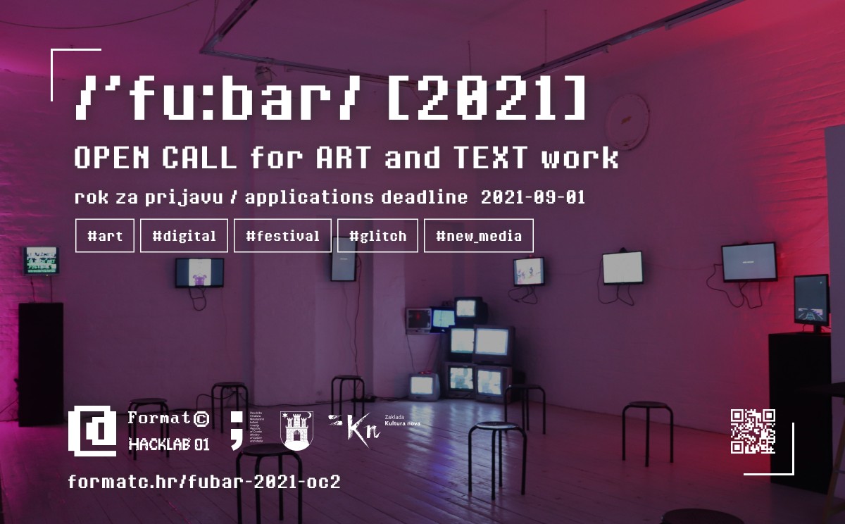 /’fu:bar/ is a yearly festival gathering focused on electronic error-themed reinterpretative multimedia art. The week-long festival starts on the first Saturday of October and hosts an artist residency program, showcases diverse talks, workshops, performances and an inclusive group exhibition, set up at multiple locations in Zagreb (Croatia) and online.