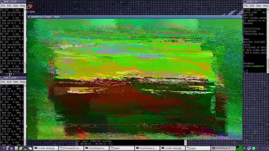 MANTISSA is partly a reference to the book by John Fowles and partly to the meaning of the word as the least significant fraction of something. The video is a record of the script I call Mantissa running on a computer which takes its input from two cameras observing the screen as a seed then uses a displacement script to alter that seed combined with the current feedback on screen , its a self feeding and self recording feedback loop which is slightly out of step with itself and which continues infinitely constantly changing until halted by the user. I see it as both the computer observing itself and as conjuring something out of nothing , which is also the theme of the book.